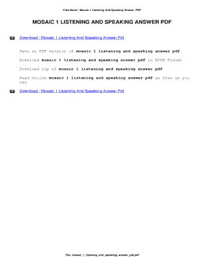 Read Answer Key Mosaic 1 Speaking Gold Edition Epub By Click Button. Answer Key Mosaic 1 Speaking Gold Edition it’s easy to recommend a new book category such as Novel, journal, comic, magazin, ect. You see it and you just know that the designer is also an author and understands the challenges involved with having a good book. You can easy klick for detailing book and you can read it online, even you can download it